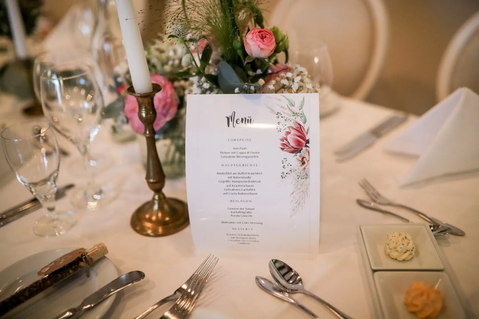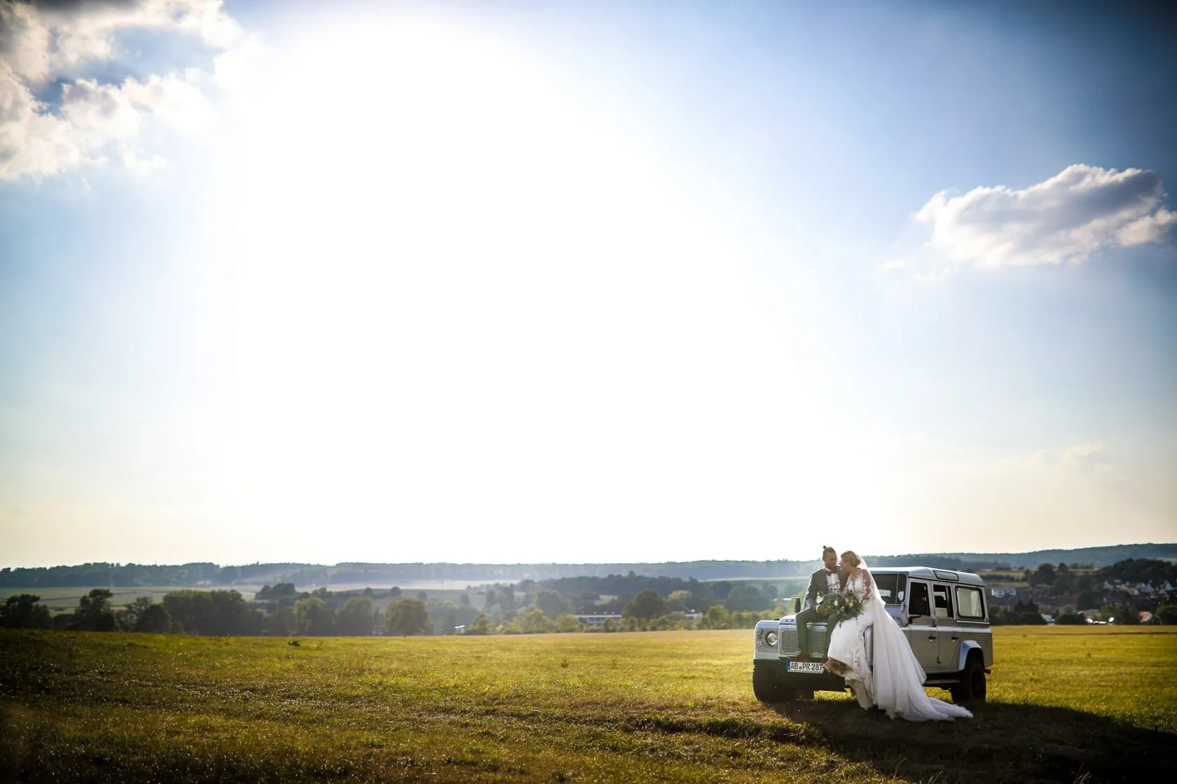 Die beiden reisten an dem Tag der Hochzeit mit Ihrem Landrover und Ihren beiden Hunden „Emma & Blue“ an und dekorierten zusammen mit Antje (Bankett-Management Schloss Romrod) den Eingangsbereich, sowie teile des Sektempfangs.
